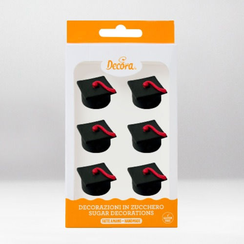DECORA 6 GRADUATION CAPS SUGAR DECORATIONS